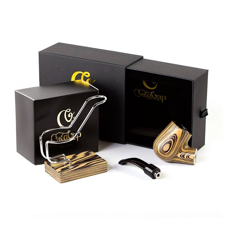 Nella confezione trovi Stem Saddle 3″ e supporto dedicato, mentre l’atomizzatore non è incluso. Il corpo della Bent Epipe 18350 è completato da una camicia interna in Delrin nero, da un connettore 510 regolabile con pin su molla in acciaio inox e da uno switch in alluminio inciso con il logo CrèaVap.