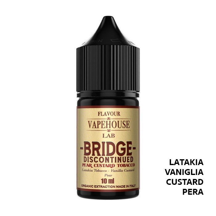 Bridge di Vapehouse in versione Mini Shot al gusto di Tabacco Latakia, Pera e Vaniglia Custard.