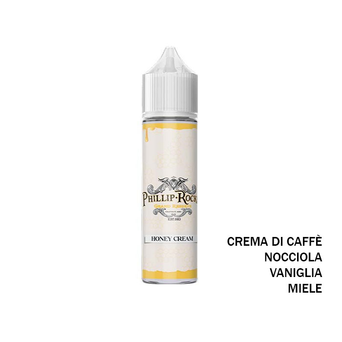 Per ottenere il liquido finale Phillip Rocke Créme De La Créme Honey Cream da 60ml pronto all'uso, oltre ai 20ml di aroma contenuti nel flacone, vanno aggiunti 40ml di base neutra con o senza nicotina, così come riportato nella tabella delle diluizioni dei liquidi scomposti Phillip Rocke.