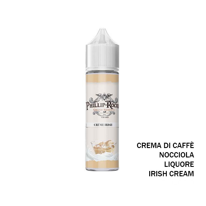 Per ottenere il liquido finale Phillip Rocke Créme De La Créme Irish da 60ml pronto all'uso, oltre ai 20ml di aroma contenuti nel flacone, vanno aggiunti 40ml di base neutra con o senza nicotina, così come riportato nella tabella delle diluizioni dei liquidi scomposti Phillip Rocke.