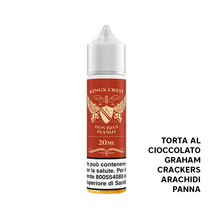 Don Juan Peanut di Kings Crest è un aroma scomposto al gusto di Torta al Cioccolato, Graham Crackers, Arachidi e Panna.