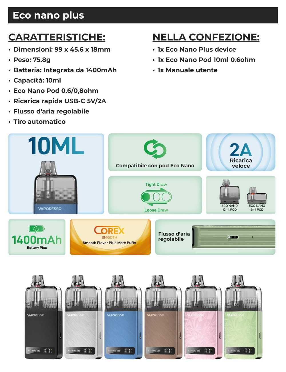 - Compatibilità con Eco Nano Pod da 0.6 e 0.8 ohm