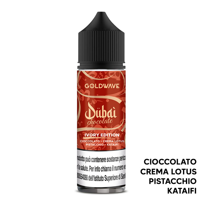 Ivory Edition di Goldwave è un aroma scomposto al gusto di Cioccolato, Crema Lotus, Pistacchio e Kataifi.