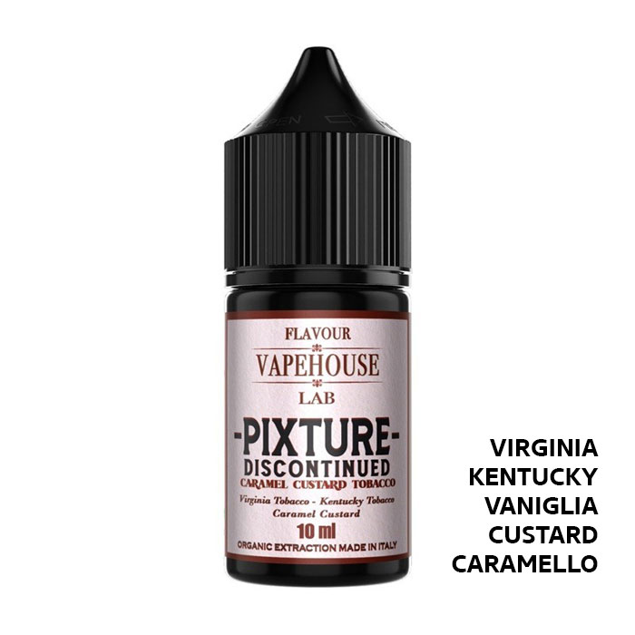 Pixture di Vapehouse in versione Mini Shot al gusto di Tabacchi Virginia e Kentucky uniti al Caramello e Vaniglia Custard.