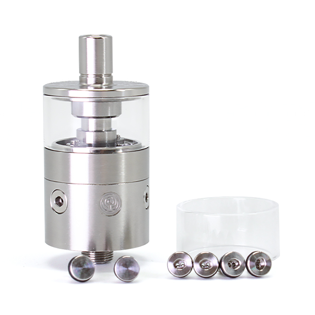 Il design modulare della camera di aspirazione permette di personalizzare l’esperienza di svapo grazie ai 4 fori aria laterali intercambiabili. Di serie è installato un pin con configurazione 4 × 2×0,5 mm, mentre nella confezione sono presenti ulteriori pin da 4 × 2×0,6 mm e 2 pin ciechi, consentendo una regolazione ancora più fine del tiro e del contrasto. La combinazione di materiali tecnici come PEEK e acciaio assicura stabilità termica, resistenza meccanica e durata nel tempo.