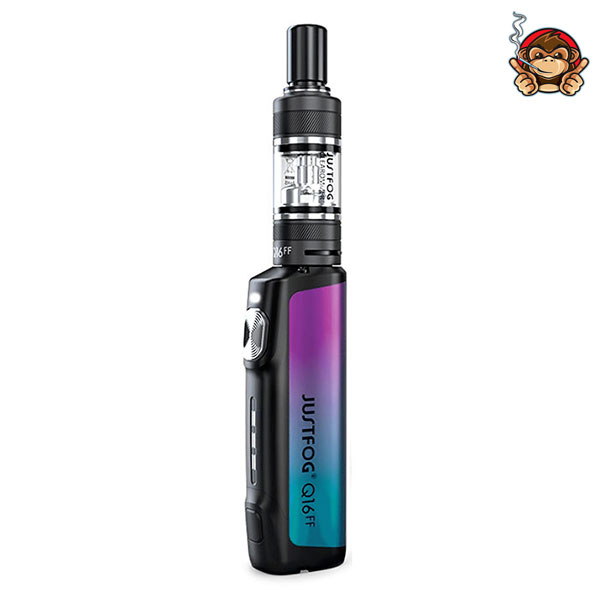 Justfog presenta l’evoluzione della famosa Q16, la Q16FF è dotata di una batteria integrata da 900mAh ricaricabile tramite la porta USB type C. La potenza è regolabile su 3 livelli, i led oltre ad indicare la potenza mostrano anche la carica residua; luce bianca = piena carica, luce blu = metà carica e luce rossa = 30% di carica. La capacità del tank è di 1,9ml e si ricarica dall’alto ruotando leggermente la parte superiore dell’atomizzatore. Nella confezione troviamo inclusa la nuova FF Coil con un valore resistivo di 1,2ohm.