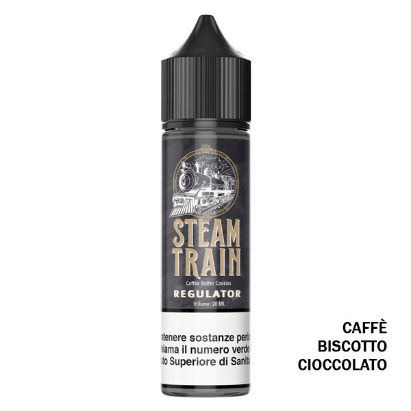 Regulator di Steam Train è un aroma scomposto al gusto di Caffè e Biscotto al Cioccolato.