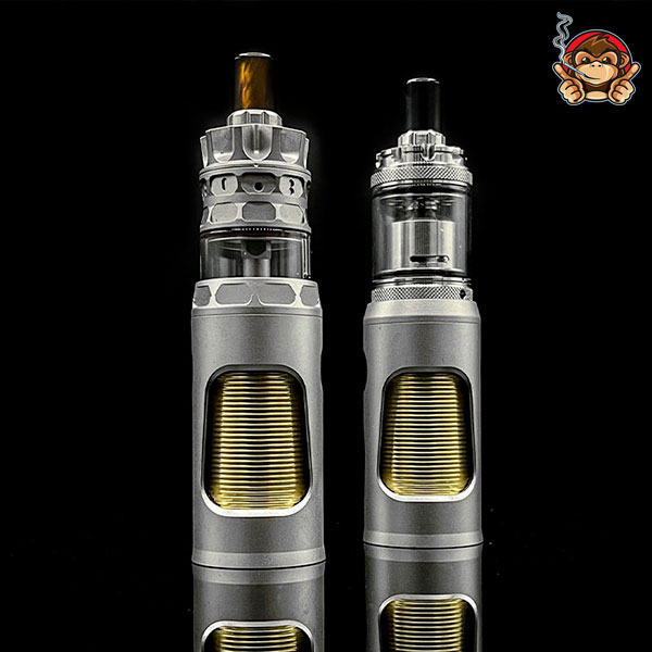 Il The Keep viene venduto nella sua sacca in pelle verde realizzata da Gentleman Crafts, utile per il trasporto senza che questo venga rovinato. In dotazione anche due differenti tappi superiori (attacco 510) uno dei quali, con anello estetico più alto, richiama la stessa estetica del The Rook, l’ altro più basso e generico è perfetto per il Millennium e tutti quegli atomizzatori che hanno l’entrata dell’aria in basso.