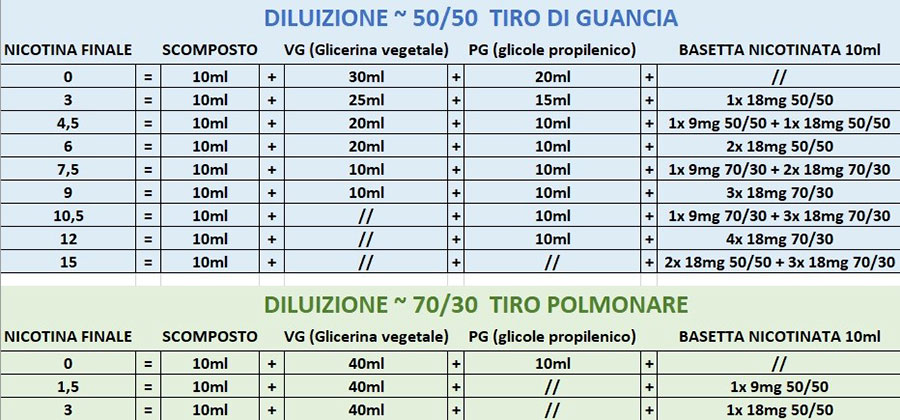 Per ottenere il liquido finale Tom Klark’s Weisser Hahn da 60ml pronto all'uso in base alla gradazione di nicotina desiderata, oltre all'aroma contenuto del flacone, va aggiunta base neutra con o senza nicotina così come riportato nella tabella di diluzione Weisser Hahn Tom Klark’s.