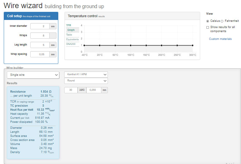 Spostandosi poi nella sezione Wire Wizard ed inserendo nuovamente i medesimi parametri, si possono osservare le curve di svapo (TFR), ovvero l’esatto variare del TCR al riscaldamento della coil. Cliccando sul tasto DNA200, sarà possibile scaricare la tabella con i dati TFR, che serviranno per configurare la box. Da questo punto in poi, bisogna utilizzare due software diversi a seconda del circuito posseduto dalla sigaretta elettronica.